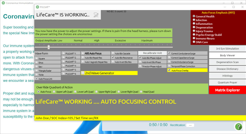 The ED.X and NUCLEUS team has created a special application, the CORONAVIRUS IMMUNIZATION. This is a special application that super-boosts your immune system for protection against viruses, while also zapping the coronavirus (and any other virus or pathogen).